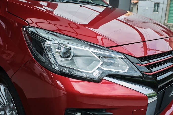 Một nâng cấp ở phần đầu xe cũng không kém phần ấn tượng là cụm đèn chiếu sáng phía trước và đèn sương mù được sử dụng công nghệ Led tăng khả năng chiếu sáng, độ bền và tính thẩm mỹ cho xe. Ngoài ra Attrage còn được trang bị thêm hệ thống cảm biến đèn pha và gạt mưa tự động tiện lợi và hiện đại hơn.