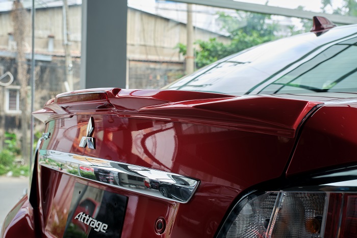 Đuôi xe Mitsubishi Attrage khá ấn tượng với nhiều chi tiết được nâng cấp, được trang bị thêm đuôi gió tích hợp đèn báo rẽ tăng tính thẩm mỹ và an toàn.