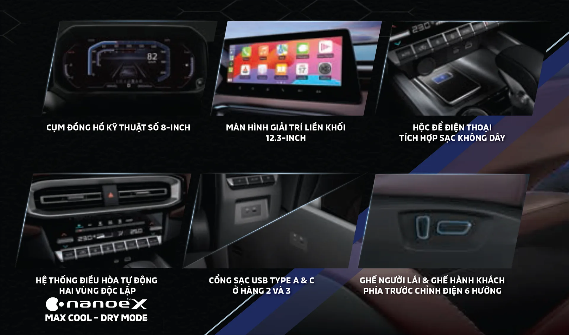 Các tiện ích thông minh được bố trí xuyên suốt khoang lái, từ các hộc để ly ở cửa và bệ tỳ tay, cho đến bàn gập và các ngăn chứa đồ sau lưng ghế trước dành cho máy tính bảng và các vật dụng. Mỗi hàng ghế đều được trang bị cổng sạc USB Type A và Type C, đảm bảo mọi thiết bị của các thành viên trong gia đình luôn được kết nối và đầy năng lượng.