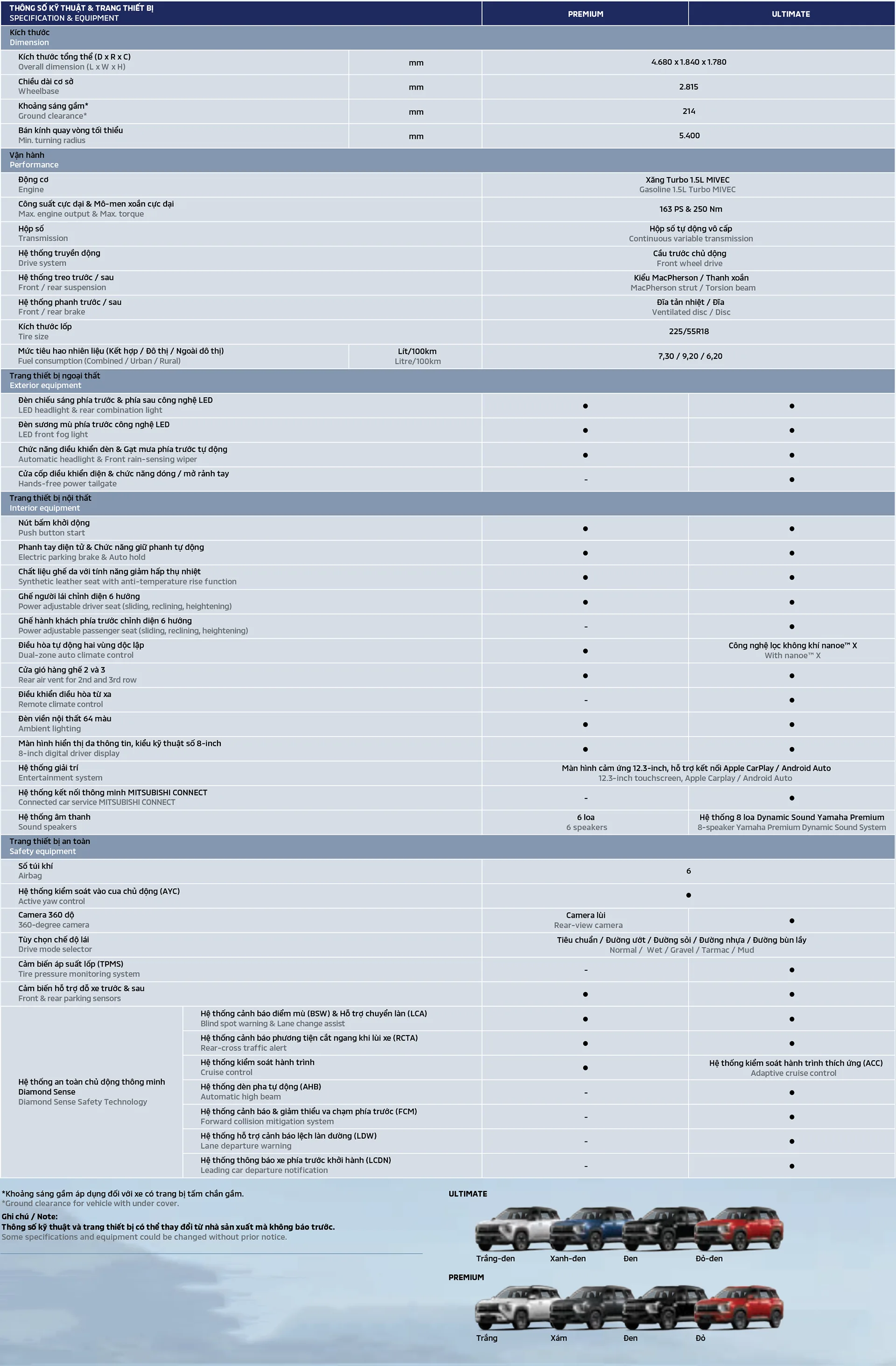 Destinator được trang bị động cơ xăng Turbo 1.5L MIVEC, kết hợp cùng hộp số vô cấp CVT, sản sinh công suất tối đa 163 PS và mô-men xoắn cực đại 250 Nm. Sự kết hợp này mang lại hiệu suất vận hành vượt trội, đồng thời tối ưu hóa mức tiêu thụ nhiên liệu.